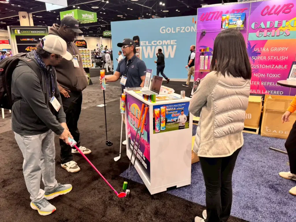 2026年1月23日 ニュース PGAショー2026現地レポート “CADERO Booth” THE 2026 PGA Show https://www.pgashow.com/en-us.html現地 1月21・22日(米国・オーランド) 熱気に包まれたCADERO のブースと、展示会場の様子をご報告します。 DAY 2 DAY 3 会場はさらなる熱気に包まれました。 CADERO Booth 大注目の MEGA-sized Training Grip 会場の雰囲気 明日は早くも最終日です!